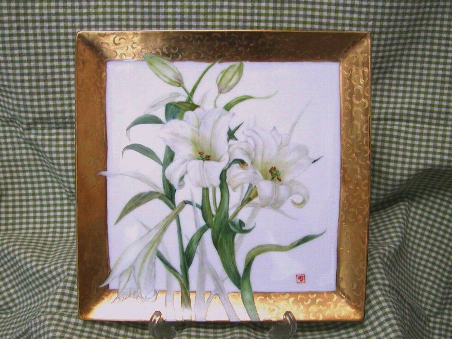 アメリカンペインティングの作品です。 水仙や桜など、”ジャパニーズ”な感じのものや、油絵のような感じのものがあり、ヨーロピアンとは少し趣が異なります。 使う筆の種類も違います。