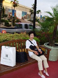 グアムといえば、ショッピングも充実。ダイバー2号もたくさんの紙袋を抱え、満足したようです。 (でも、はしゃぎすぎて少し疲れたみたい) |