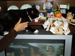 でも好奇心は今も旺盛。鏡餅が珍しくて仕方ありません。