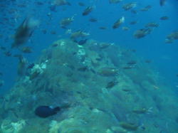 ジンベイザメが出没することで有名ですが、年に数回のことで、よほどの幸運でなければあえません。